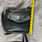The Vintage Fossil 1954 Crossbody Shoulder Bag Purse in Pebbled Black Leather is a stylish and versatile accessory suitable for a variety of occasions. Made in the United States, this medium-sized rectangular bag features a unique pebbled exterior with a black leather handle and adjustable strap. The brass hardware accents, zip and buckle closures, and multiple inner and outer pockets offer both functionality and charm. Perfect for travel, casual outings, workwear, or business meetings, this vintage bag exudes a classic yet trendy vibe, making it a timeless addition to any wardrobe. Some significant but light cratches on backside see images