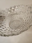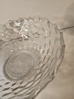This vintage Fostoria American Cubist Pattern serving bowl is a beautiful addition to any dinnerware collection. The round, 10-inch bowl features a stunning fruit pattern and is made of shiny clear glass. Perfect for all occasions, this mid-century modern style bowl is a licensed reproduction and weighs 4 pounds and 12 ounces. The bowl is designed with a single place setting and comes with a matching fruit bowl. It is perfect for serving fruits or any other dish. The item length and depth are 4 inches, and it has a beautiful clear color that will complement any table setting. This bowl is a great piece for collectors or anyone who appreciates beautiful glassware. New out of box