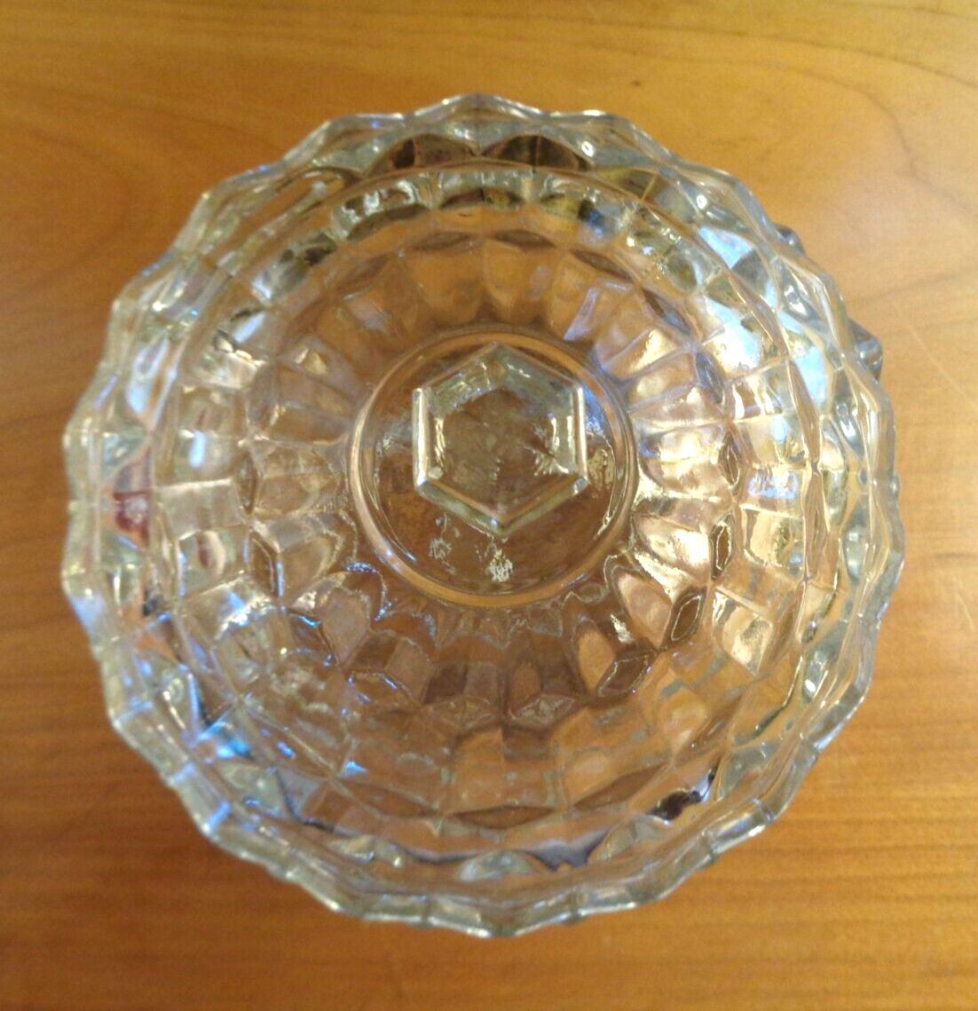 TERRIFIC VINTAGE FOSTORIA GLASS "AMERICAN" PATTERN-CUBED CANDY DISH w/LID This listing is for a terrific piece of vintage Fostoria Glass. The candy dish with lid is in the "American" pattern which is cubed. It measures 5" tall and 5 1/4" in diameter. It is in very good condition. If you have any questions, please email me. If you purchase any other item in my store, I will combine shipping (if I can). Thank you for visiting my listing.