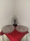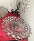Vintage Fostoria American Clear Glass Salad Plates – Set of 6 (Stem 2056, 8½" Diameter) Add a touch of timeless elegance to your table with this set of six Vintage Fostoria American Clear Glass Salad Plates. Featuring the iconic cube-cut pattern (Stem 2056), these plates showcase the exquisite craftsmanship and classic design that Fostoria is known for. Features: Set of 6 salad plates – Perfect for salads, appetizers, or desserts 8½" diameter – Versatile size for various serving needs American Clear Glass design – A brilliant, faceted pattern that reflects light beautifully Vintage charm – A collectible addition to any glassware collection Ideal for both casual and formal dining, these Fostoria salad plates seamlessly blend vintage sophistication with everyday functionality, making them a stunning addition to any serveware collection.