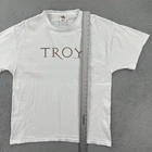 A vintage Fruit of the Loom white t-shirt in size XL, featuring a crew neck and short sleeves. Made of cotton knit fabric, it has a regular fit and is from the year 2004. This promotional t-shirt is related to the movie "Troy" starring Brad Pitt, making it a unique and collectible item for fans of the film. No holes or stains See pictures for pictured measurements compare with your favorite garment and ask questions if you have any Add to your collection today Browse my other items I can combine shipping