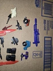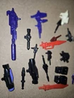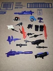 This is a vintage lot of G1 Transformers parts and accessories from the 1980s, produced by Hasbro. The parts are original and rare, showcasing features like transforming abilities that are characteristic of the Transformers series. These items are connected to the Transformers franchise and likely evoke a sense of nostalgia for fans of the vintage Transformers toys. The lot includes various weapons and parts that could potentially be used to complete or enhance existing G1 Transformers action figures.