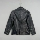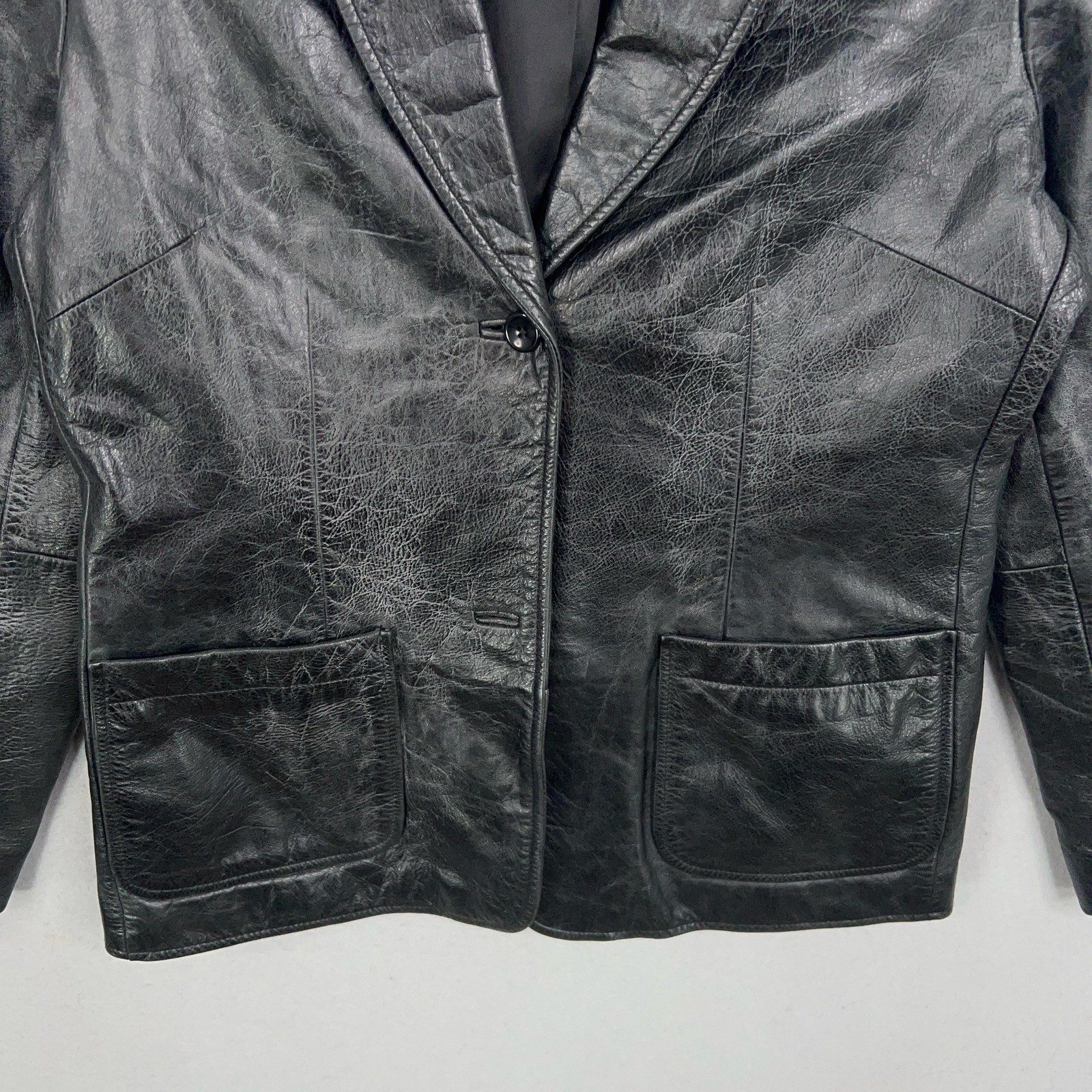 Vintage GAP Leather Jacket Womens Medium Black Blazer Button Notch Lapel 00s Heavy wear to leather with creasing and rub marks from use. Noticeable discoloration/fade at lower back hem area. Lining intact and buttons secure; no holes or tears observed.Brand: GAP Item: Womens leather blazer jacket with notch lapel and single-button front Color: Black Size on tag: M (Medium) Shell: 100% Genuine Leather Lining: 100% Polyester Features: Two front patch pockets; button cuffs; fully lined Labels/Markings: GAP neck label Codes on interior tag: RN 54023; 302945; 123478; date code 3/00 Era: Early 2000s piece based on the 3/00 tag Notes: Classic tailored silhouette with natural leather grain and patina 22339 Measurements: - Previous washings may change the sizing written on the tag. - Please refer to the photos above for all measurements. - Please compare our measurements to that of one of your favorite garments. - Please note, item measurements are approximate . All items are bagged and sealed after being photographed, then stored in a smoke free environment to ensure the item is exactly the same as when photographed. All items have been washed per eBay standards & policies. I carefully package and ship daily. Feel free to contact me with any questions.