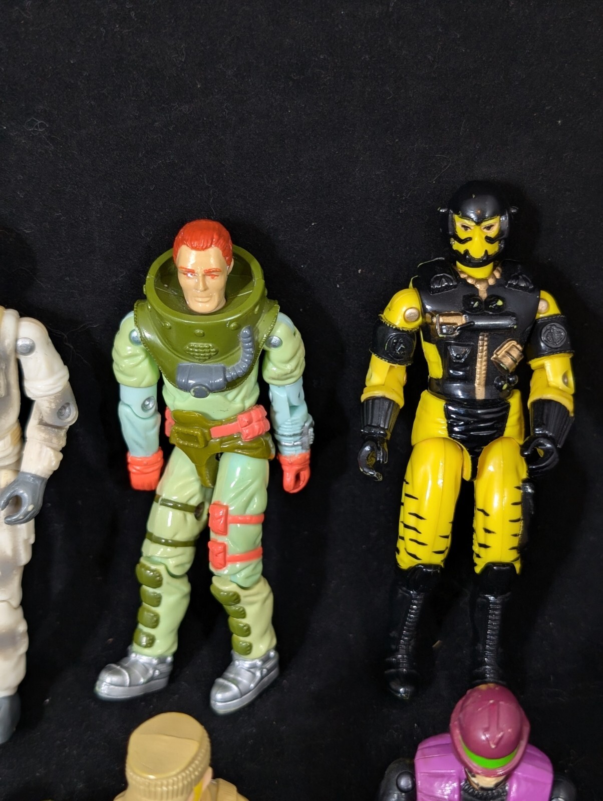 This Vintage GI JOE Action Figure Lot includes figures and body parts from the 1980's and 90's. The set features characters such as Deep Six, Wet Suit, and Snow Job, all made from durable plastic material. The figures stand at 3.75 inches tall and are in great shape for their age. This lot is perfect for collectors of vintage action figures, especially those interested in the G.I. Joe franchise. The figures come from the popular TV show G.I. Joe Arah and are sure to bring back memories of childhood playtime. Don't miss out on the opportunity to add these classic action figures to your collection.