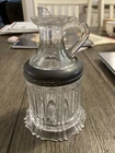 Add a vintage touch to your table setting with this beautiful glass cruet/syrup dispenser. The clear pressed glass material adds an elegant touch to any table decor and collections. Ideal for any collector or lover of vintage tableware.