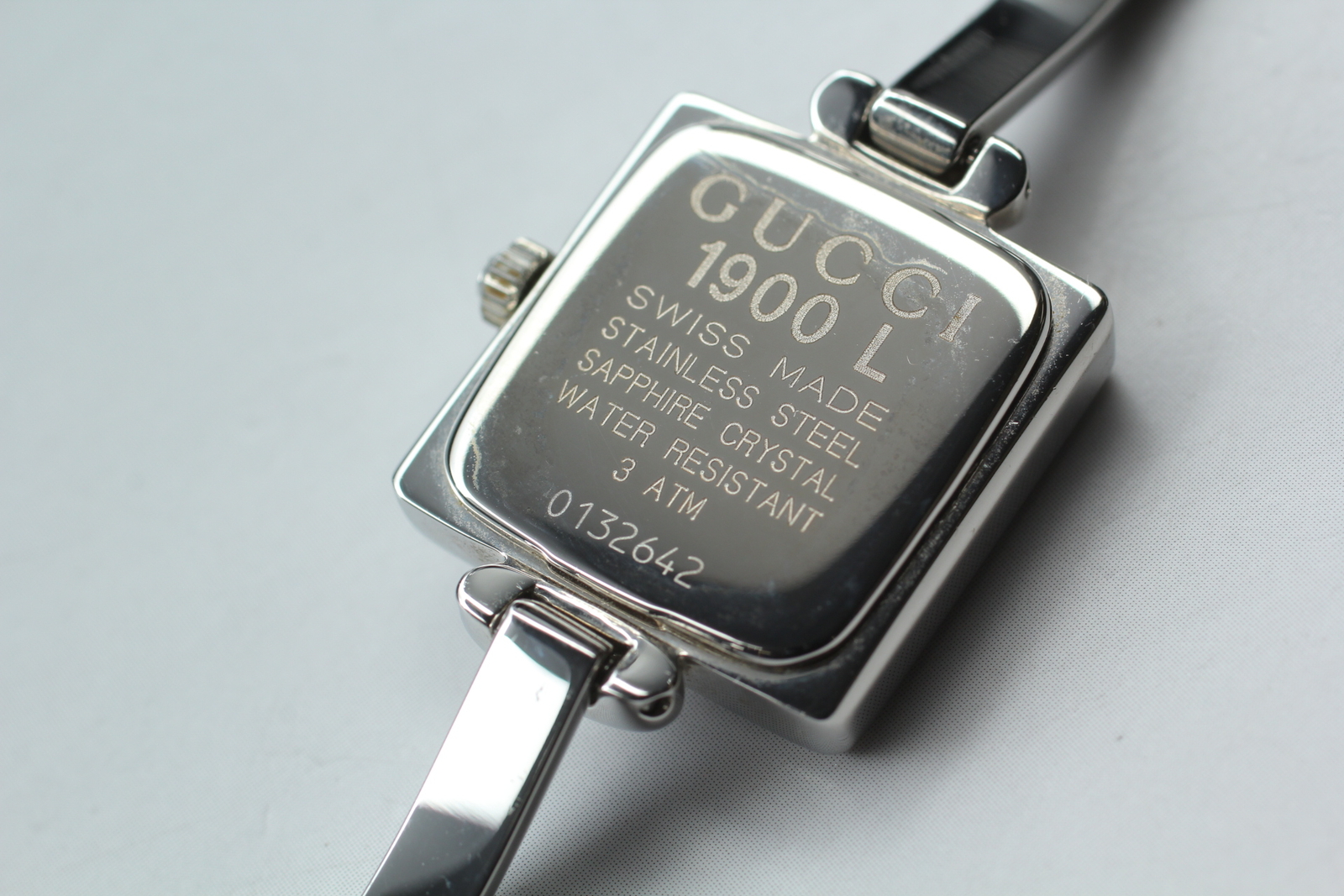 Vintage [Near MINT] GUCCI 1900L Black Dial Square womens Quartz Watch From JAPAN Description Total Condition; NEAR MINT TOP MINT Pre-owned, Almost new item MINT Pre-owned, Like new NEAR MINT Pre-owned, almost no signs of use EXCELLENT+++++ Pre-owned, minimal signs of use EXECELLENT Pre-owned, heavy signs of use VERY GOOD Poor appearance Serial Number; 0132642 Appearance; Appearance is beautiful. tiny scuffs from normal use. It shows signs of use. *Please check photos. Functional; It works properly. The watch is currently running smoothly, but since it is a battery-powered watch, there is a possibility that it will stop during transportation. In that case, please replace the battery on your own. Please understand that we do not guarantee that this will happen. Please contact me first for return before you ship it back to me. The postage of the returned goods is a buyer burden. Bundled Items; All you can see on the picture will be included in a set of a package. Above condition is based on my own opinion. Please check the photo carefully. Please feel free to contact me for any questions! Thank you. Shipping I send a product by FedEx International Priority . I attach the tracking number. Please bid it without worrying. Shipping is available from Monday to Friday. Weekends are not available because office is closed. Storage and Packing Storage Immediately after shooting, it is placed in a closed container with desiccant and stored for 24 hours and 365 days in a temperature and humidity controlled warehouse. All products, including cameras and lenses, are stored in a temperature- and humidity-controlled warehouse 24 hours a day, 365 days a year. Packing By weight and shape of each product, I use 13 kind of cushioning materials and pursue safety and weight reduction. Returns Unconditional Return Policy Customer service and satisfaction are very important to us. I have an unconditional return policy if notified within 30 days of the receipt of the item. All returned items must be the original condition. All return requests must be made within 30 days of the receipt of the item. Please contact me first for return before you ship it back to me. The postage of the returned goods is a seller burden. International Buyers Please Note: Import duties, taxes, and charges are not included in the item price or shipping cost. These charges are the buyer's responsibility. Please check with your country's customs office to determine what these additional costs will be prior to bidding or buying.