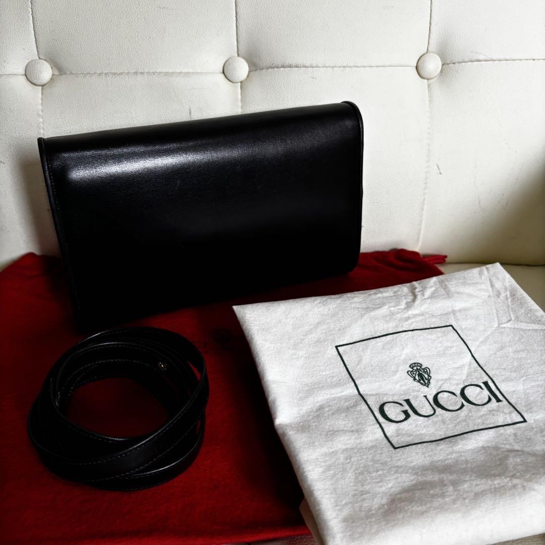 Vintage GUCCI 2-Way Black Bag Clutch in Excellent Condition with Accessories