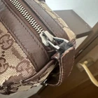 This vintage GUCCI GG shoulder bag is a true gem! The rich brown canvas and leather combo gives it a timeless, luxurious feel. Despite some scuffs, it's still stylish and sturdy—perfect for adding a touch of Italian elegance to any outfit. The size is practical for daily essentials, and the vintage wear just adds character. A must-have for GUCCI lovers!