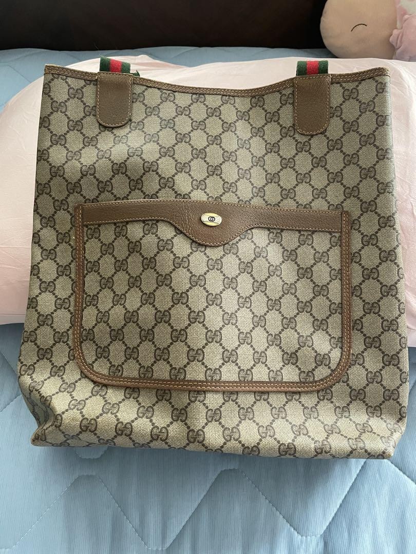 $ 135.43GUCCI GG Canvas Sherry Line Tote Bag with Charm A4 Size Japan Import