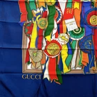 This vintage GUCCI silk scarf is absolutely stunning! The horse award medal print is elegant and timeless, and the blue border adds a classic touch. The silk feels luxurious, and the condition is nearly flawless—just minor wrinkles and pulls on the edges. At 34", it’s the perfect size for draping or tying. A must-have for any fashion lover! Highly recommend.