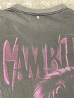 Pit to pit 25” Length 29” Repaired holes This is a vintage black T-shirt made of cotton with a round neckline and short sleeves. It features a solid pattern and a graphic of the Marvel character Gambit. The shirt is a size XXL and fits regular. It was manufactured in the United States in the 1990s and is part of the Signal product line. The shirt is suitable for all seasons and has a unit quantity of one. Its theme includes Gambit, cartoon, comics, 90s, and Marvel. The shirt is perfect for fans of the X-Men and the Marvel Universe.