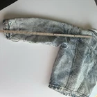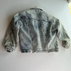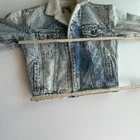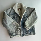 Vintage denim jacket Sherpa lined Faded light wash denim Distressed Please see pictures for approximate measurements to assure a proper fit.