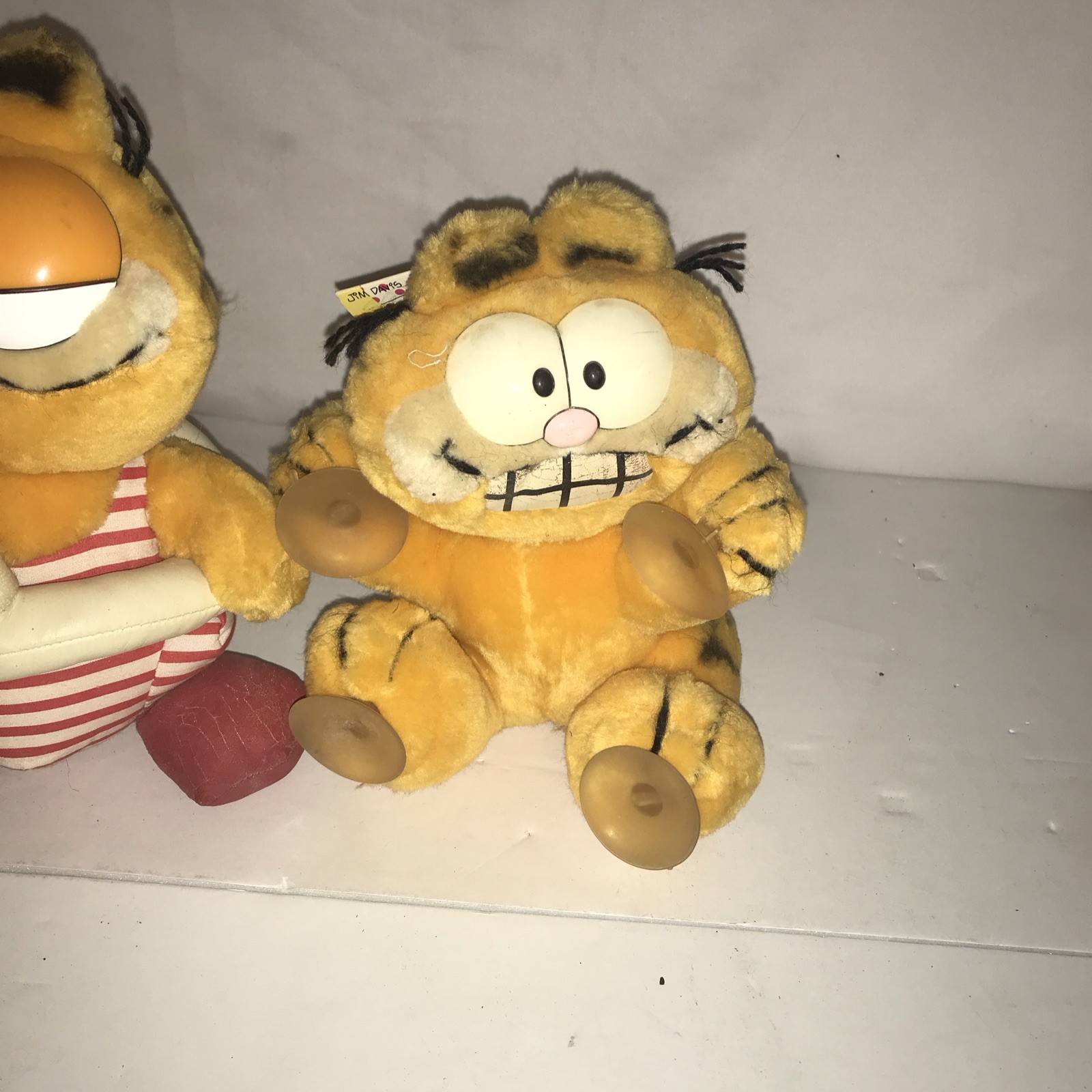 This lot of 3 vintage Garfield plush toys from the late 1970s to early 2000s features multicolor plush material made in the United States. These collectible items are part of the Garfield franchise and are a must-have for fans of the iconic comic strip character. Each plush toy is a unique piece of animation merchandise that captures the charm and nostalgia of the beloved Garfield series.