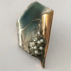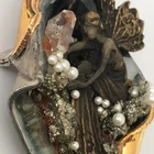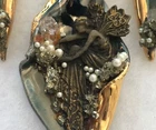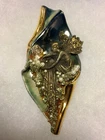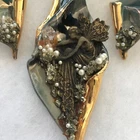Rare VINTAGE Theme: Art Nouveau Angel Brooch Earrings Set Ceramic, Gold Leaf, Pyrite, Pearls and Clear Quartz Crystal Exquisite design and appearance. Rare beauty. Very Good Pre-Owned Condition. Post Closure Brooch Length: 3.75 Inches Earrings Length: 1.5 Inches