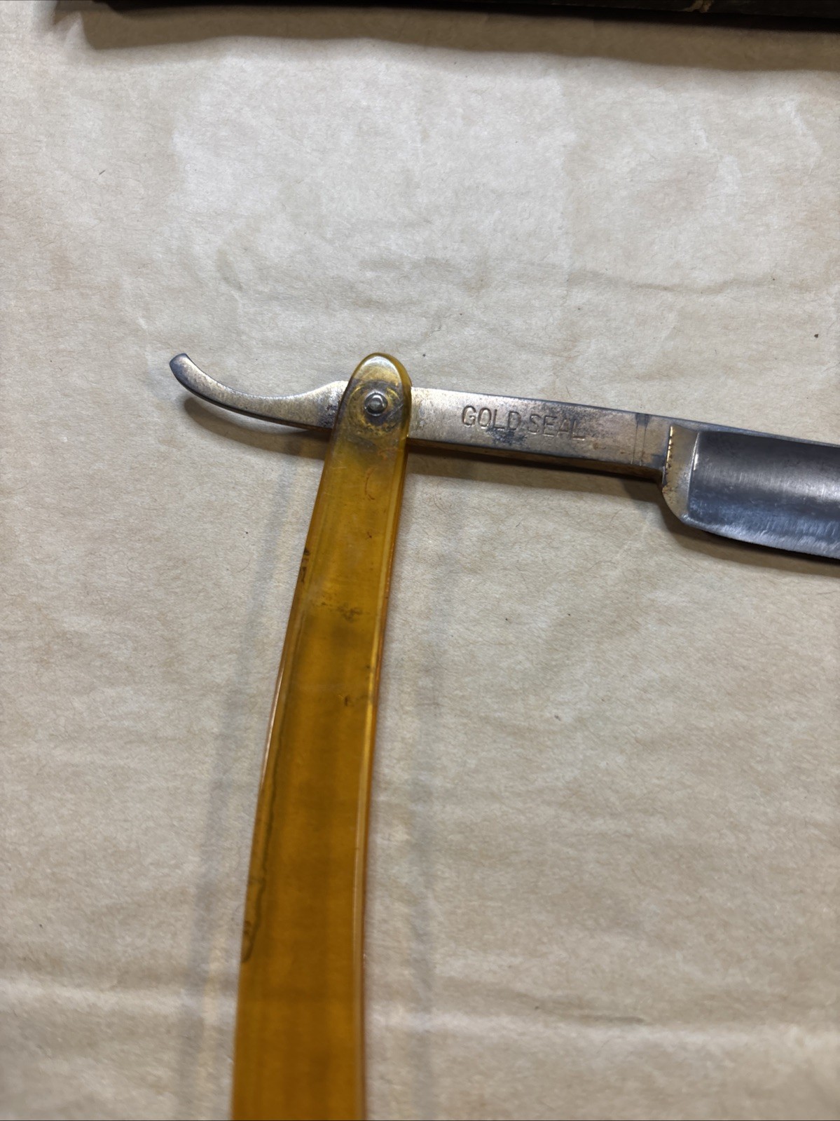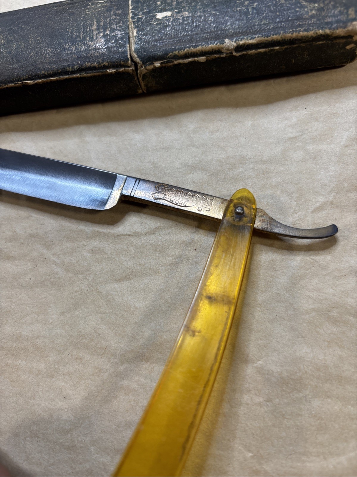 vintage Geo. Worthington, Cleveland, Ohio straight razor with whitish handle
