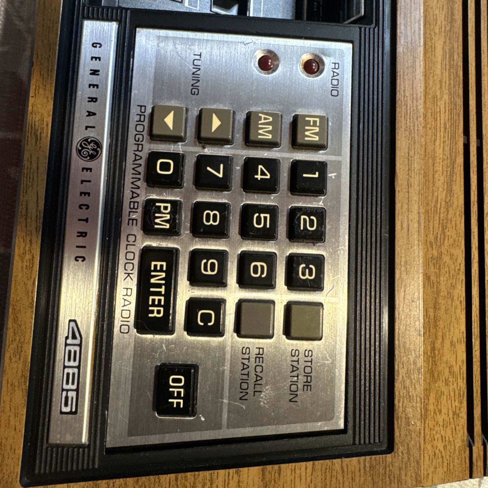 This is a General Electric ALARM CLOCK RADIO model NO. 7-4885 everything works 🧲except for the 2 little lights located on the left side of button panel were it says RADIO 🧲 they don’t interfere with any function of radio at all. the buttons are working in very good condition you don’t have to press hard to to operate them. A gentle touch should do the job check pictures for condition I would said for its age it’s in good condition it has some little scratches here and there alarm, time and radio working good it does not have an antenna but this radio uses a wire antenna which you can get anywhere this is a really good choice for you remember the buttons are working in gentle mode which means you don’t have to press to hard to make the work it is electric and also battery operated does not come with batteries