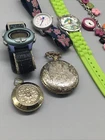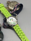 Vintage- Geneva Pocket Watch Eagle, Lady Nelson, Timex, Accutime, Gymboree *SEE. UNKNOWN WORKING CONDITION. None are currently on, might need a battery replacement or might be broken. Listing is for as is condition. NON WORKING CONDITION. Pink flower band has lost it’s stretch due to age *r1
