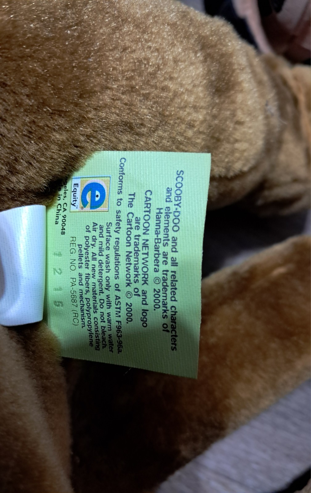 The Vintage Genuine Cartoon Network Stuffed Talking Scooby Doo is a brown plush toy standing at 27 inches long. This collectible item from the year 2000 features the iconic character Scooby-Doo from the Hanna-Barbera animation studio and Cartoon Network franchise. With its talking feature and original design, this vintage plush is a nostalgic piece for fans of the Scooby-Doo TV show and cartoon series. Perfect for all ages and a must-have for any Scooby-Doo enthusiast, this talking stuffed animal is a unique addition to any collection.