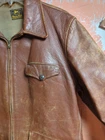 Beautiful worn vintage leather jacket No holes just real nice authentic leather wear no size tags measurements are Pit to pit 23 Length 28 1/2 Sleeve pit to end 18 Shoulder seam to end 24