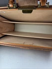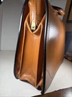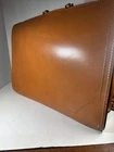 This Vintage Genuine Top Grain Cowhide Expandable Locking Briefcase is a stylish and functional accessory for business occasions. Made from high-quality leather with a solid beige color, it features a top handle for easy carrying. The briefcase has a large size with dimensions of 18 inches in width, 14 inches in height, and 7 inches in depth, providing ample space for documents and other items. The brass hardware adds a touch of elegance, and the catch fastener and snap closure ensures your belongings are secure. This retro-themed briefcase is a timeless piece that combines classic style with practical functionality.