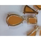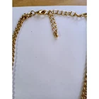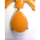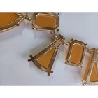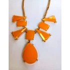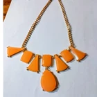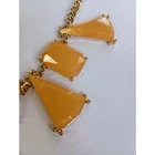 Vintage Geometric Shapes Shimmery Apricot Pendant Stone Necklace 21" Style: Bib Stone Shapes: Teardrop, triangle and rectangle Material: Plastic, resin Chain: Gold-tone cable Closure: Lobster Clasp Adjustable, Unbranded. Stone Settings: Frame and prong setting. Weight: 2 oz.