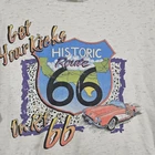 Vintage Oneita Get Your Kicks On Route 66 Corvette Made In USA Hot Rods Retro XLarge Few Small Holes and Stain See Pictures Pit 2 Pip 25 Length 28"
