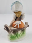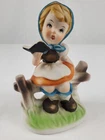 Vintage Girl on Fence with Book Porcelain Figurine Scarf on Head 4.5" Tall