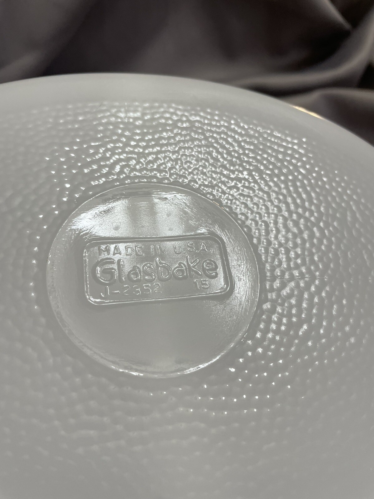 Country of Origin:United StatesType:Casserole DishNumber of Compartments:2Vintage:YesShape:OvalColor:BlueMaterial:GlassBrand:GlasbakeTheme:FlowerProduct Line:Blue ThistlePattern:FloralProduction Style:Milk Glass