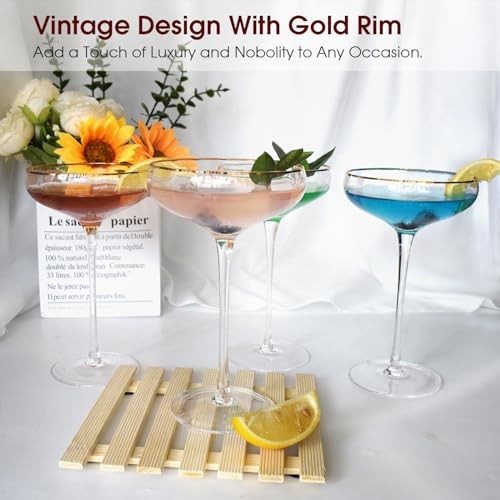 Menu 1. We require immediate payment. 2. We currently accept payment via eBay managed payments only. 3. Once payment is cleared, we will dispatch your shipment within 1-3 business days. Please refer to the "Shipping" tab for more information regarding shipping speed to your destination. Vintage Coupe Glasses Set of 4, Tall Stemmed Martini Glasses, Gold Rim Cocktail Champagne Glasses, Perfect for Bar, Martinis, Margaritas, Parties, Ideal Gift Choice, 7.7oz Clear Product description 【Classic & Timeless Elegance】 vintage coupe glasses set of 4 combines aesthetics and functionality, tall long stem, gold rim, and delicate ripple texture design perfectly interpreting the classic and timeless vintage style. The gold rimn adds a luxurious touch, making these glasses a sophisticated choice for any home bar or collection. Transparent and smooth surface , exudes luxury and sophistication when in use, leaving a deep impression on your guests. 【Exquisite Hand-Blown Glass Craftsmanship】To ensure the highest quality and uniqueness for each cocktail glass, each cocktail glass is carefully shaped and hand-blown by artisans using traditional methods. Wide bowl shape with unique shape, will not spill; the longer stem design provides more space for swirling when drinking, allowing the aroma to release slower, enjoying the ultimate elegant experience. 【Professional Versail Cocktail Glasses】Surprise not only with its appearance design but also with its tasting experience. Vintage glasses are perfect perfect for serving a variety of drinks,such as margaritas, champagne, Manhattans, lemonade, juice, and even desserts. Whether it’s a special occasion, an intimate gathering, or simply enhancing your daily cocktail time, it will make every sip enjoyable and memorable. 【Ideal Gift Choice】 coupe champagne glasses are beautifully packaged in EPE safe protection box , making them an ideal gift for friends, family or loved ones. Modern and stylish wine glasses that can enhance every decoration and party. Suitable for outdoor parties, housewarmings,birthdays, family gatherings, weddings, anniversaries, church eucharists, receptions and various occasions. Treat your friends and family, or even yourself, with the luxury elegant coupes. 【 Satisfaction Service 】 coupe glasses set of 4, will bring exquisite products and our sincerity to your hands. We provide the perfect customer service and will reach out to you once received glass, make sure you have not any concern. If you have any questions or concerns, please feel free to contact us. Embrace the sophistication and elegance of the Yasmo Vintage glassware set and enjoy an unforgettable drinking experience with your loved ones. PLEASE MESSAGE US IF YOU HAVE ANY OTHER QUESTIONS, AND MANY THANKS FOR READING ALL OF THIS. Copyright ©#. All Rights Reserved.