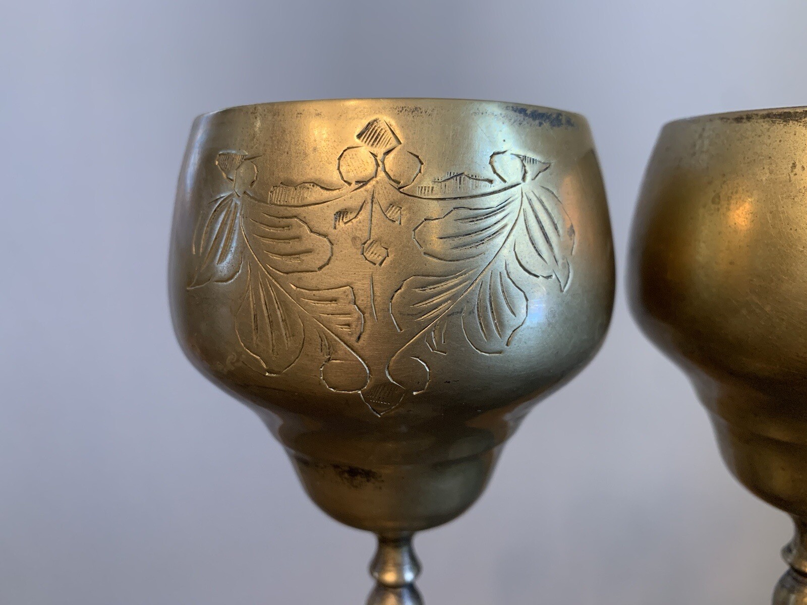 Absolutely stunning vintage goblets! The intricate etching and gold tone finish give them such elegant charm. They arrived in perfect condition with that lovely aged patina that adds character. These beauties elevate any table setting and feel wonderfully substantial in hand. A true timeless treasure!