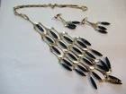 28.Make a bold fashion statement with this vintage gold tone black lucite necklace and earring set. The set includes a stunning necklace that features a unique design that will catch everyone's eye. The earrings are also a part of the set and are crafted to perfection. The jewelry set is perfect for anyone who wants to add a touch of vintage to their wardrobe. The set is crafted with high-quality materials and is sure to last for years to come. This Estate jewelry set is a must-have for anyone who wants to make a statement with their fashion choices.