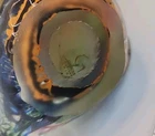 This vintage hand-blown art glass rooster figurine from Chinese origin is a stunning piece of decor that stands at 9 inches tall. Signed by the brand Gorgeous Designs, this multicolored glass sculpture features intricate details and a unique production style. Handmade with a hand-blown glass technique, this rooster figurine captures the essence of birds with a touch of vintage charm. Perfect for collectors of decorative pottery and glassware, this original piece adds a touch of artistry to any home décor setting. No chips or cracks. Absolutely stunning glasswork.