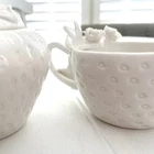 Like new! No flaws! Vintage Grace’s Teaware Strawberry Fields Sugar and Creamer Set. Indulge in the Whimsical Charm of Our Strawberry Fields Sugar and Creamer Set Inspired by the sweet allure of summer strawberries, this divine Sugar and Creamer Set brings a dash of countryside charm to your tabletop. The unique strawberry textures, paired with delicate floral embellishments, make each piece a delightful homage to the luscious fruit gardens of Britain. Designed to captivate and charm, this set is a splendid addition to any tea lover’s collection, infusing each tea time with the essence of a sunny, serene afternoon in a blooming strawberry field. Delightful Strawberry Design: The set features a charming strawberry pattern, with a textured surface and lifelike details that are sure to enchant. Floral Embellishments: Adorned with exquisite flower accents, adding a touch of grace and garden beauty. Classic Creamy Palette: A soft white finish accented with touches of pastel, capturing th