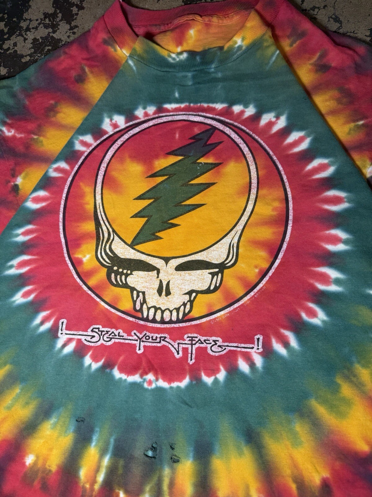 This vintage Grateful Dead tee is a must-have for any fan! The bold "Steal Your Face" graphic pops against the vibrant tie-dye, and the soft cotton-polyester blend makes it super comfortable. Perfect for concerts, festivals, or just rocking that retro hippie vibe. The XL size fits great, and the design captures the band’s iconic style. Love the throwback feel—it’s like wearing a piece of music history! Easy to wash and care for, so it stays looking fresh. Definitely a standout in my collection!