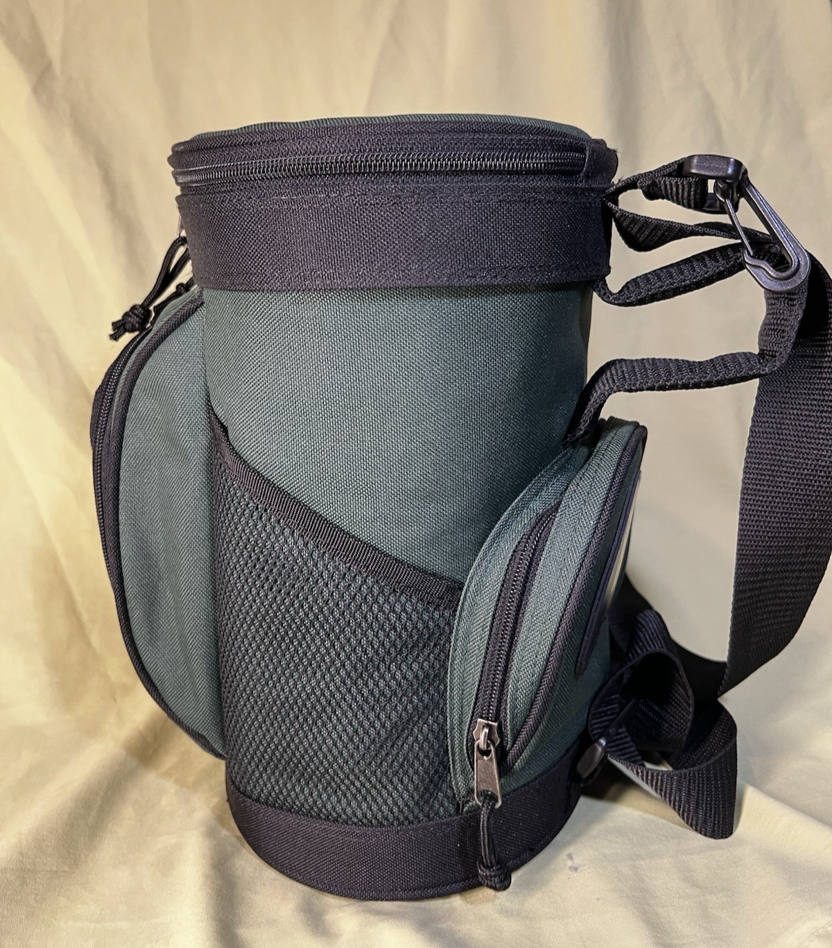 The Mini 12” Golf Bag Cooler with Zipped Pockets in green is a convenient and stylish accessory for golfers to carry drinks and snacks. Made of lightweight canvas material, this mini range bag features a compact size of 12” in height, with 4 pockets and a display ball bag for easy access during the game. The zip closure and extendable carry handle make it easy to transport, while the padded interior provides extra comfort for the golfer's equipment. Perfect for who enjoy playing golf, this staff bag cooler is a must-have item for any golf enthusiast.