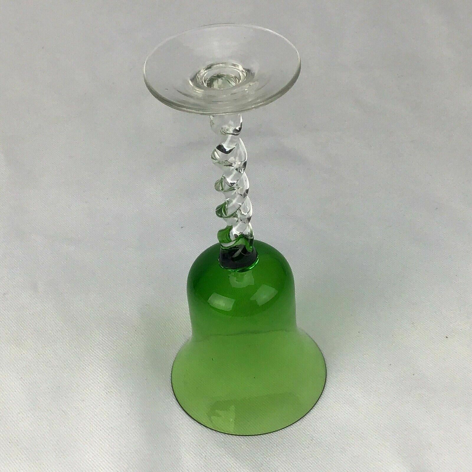 VINTAGE WATER GOBLET WINE GLASS GREEN BOWL CLEAR TWIST STEM FLUTED Measures 7" tall Excellent condition. Listing and template services provided by inkFrog