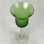 Absolutely stunning glass! The elegant twist stem and fluted green bowl give it a vintage charm that elevates any table setting. Perfect for wine or water, it feels delicate yet sturdy. At 7" tall, it’s just the right size—great condition too. A must-have for collectors or anyone who loves classic style!