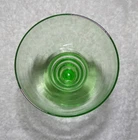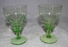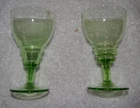 Petite glassware. Great shape unique simple design. Measures 3 3/4 inches tall. Base is 1 7/8 at widest. Top is 2 1/4. Good condition. No chips or flakes