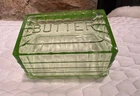 Vtg Block Optic Green Depression Vaseline Uranium Glass Cover for Butter Dish. Condition is Used. Shipped with USPS Ground Advantage.