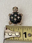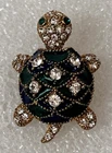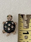 Vintage Green White Rhinestone Crystals Gold Tone Turtle Lapel Pin Brooch