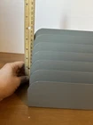 The Vintage Buddy Products 6 Slot Metal Office Desk file holder is a stylish and functional desk accessory for organizing papers and files. Made of durable metal, this desktop organizer features six slots for keeping documents neat and tidy. The grey color adds a vintage touch to any office or workspace, making it both practical and aesthetically pleasing. Ideal for business professionals looking to declutter their desk and improve productivity.