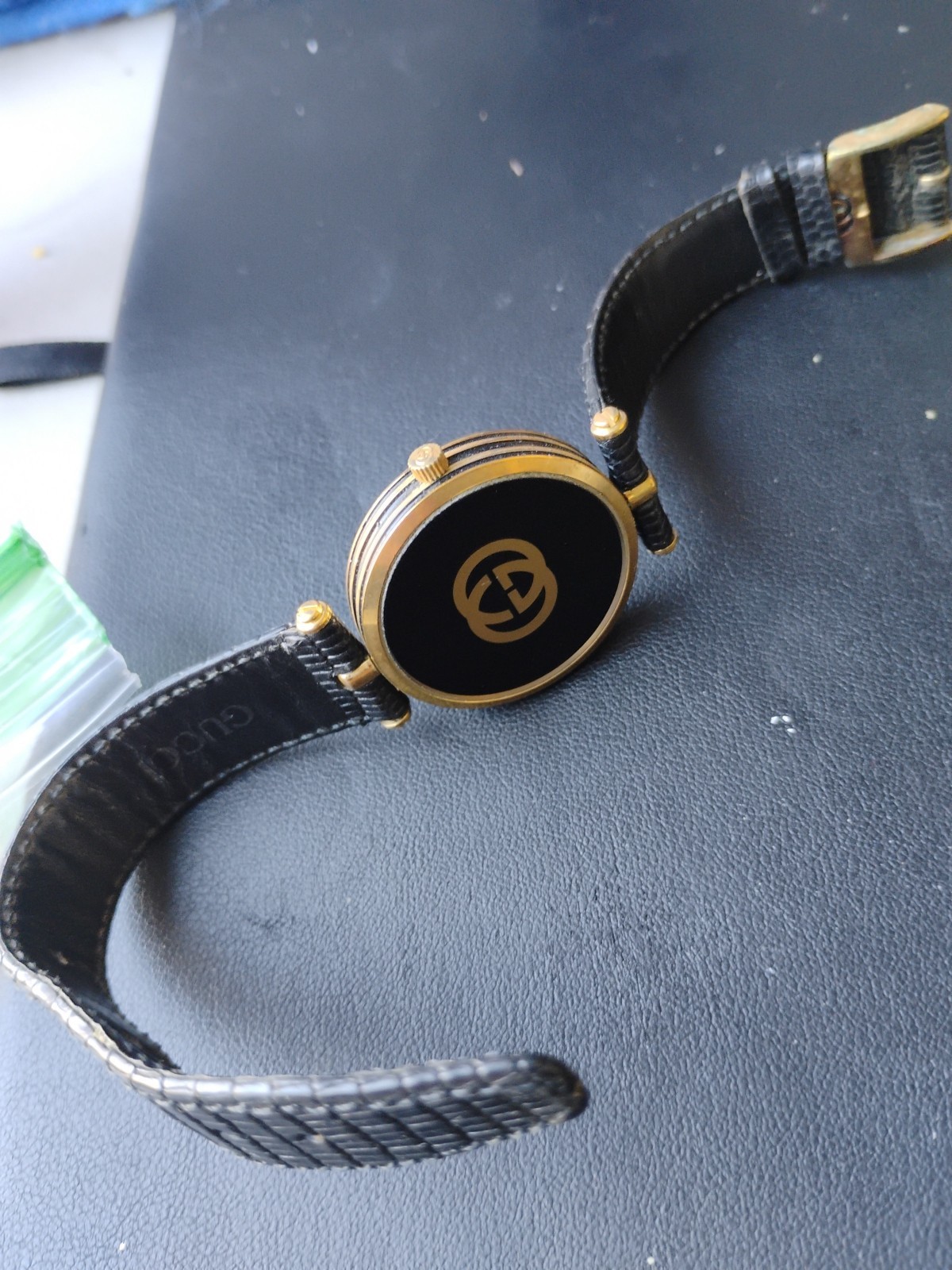 VINTAGE GUCCI 2000M SWISS QUARTZ WATCH BLACK & GOLD PLATED . Condition is Pre-owned. Shipped with USPS Ground Advantage.
