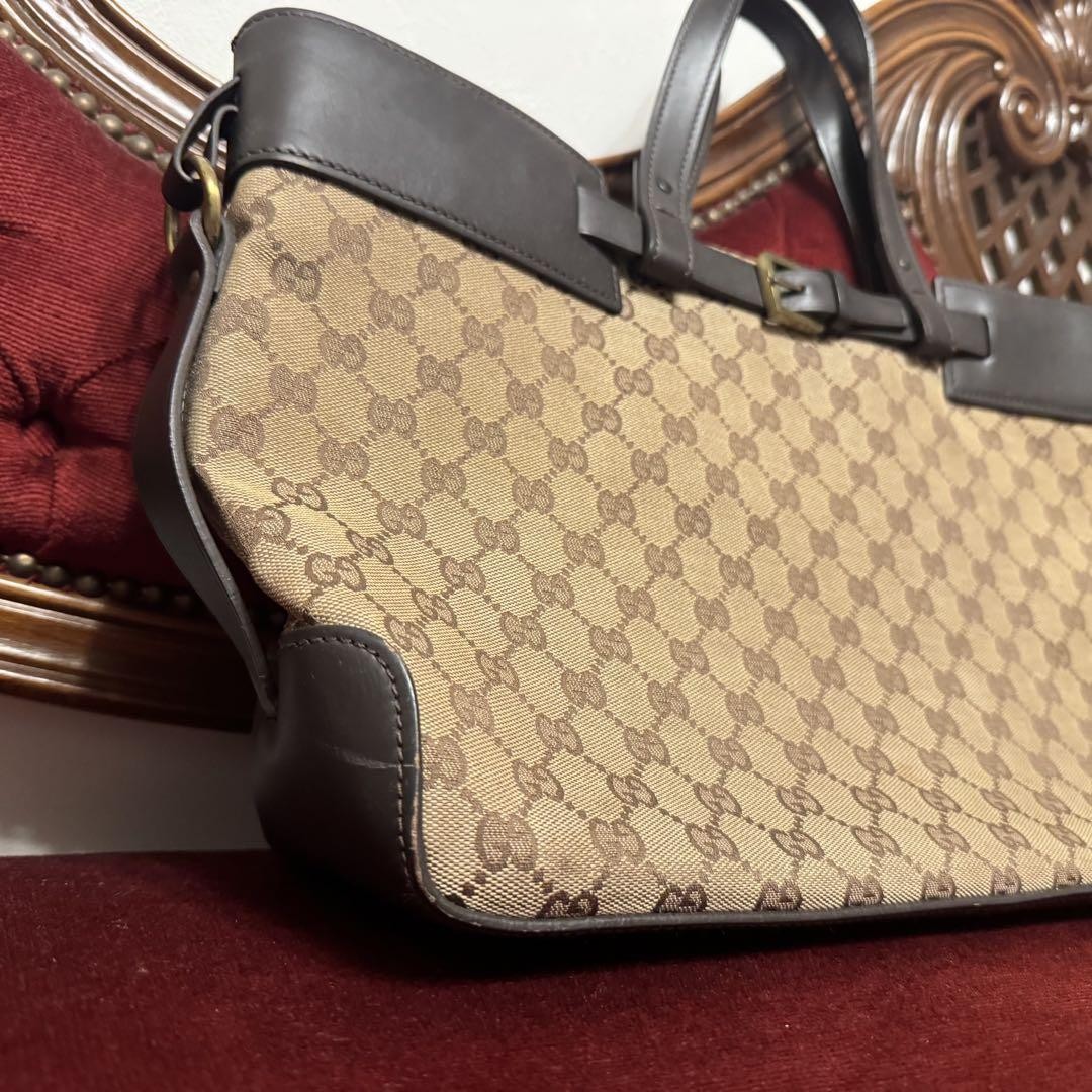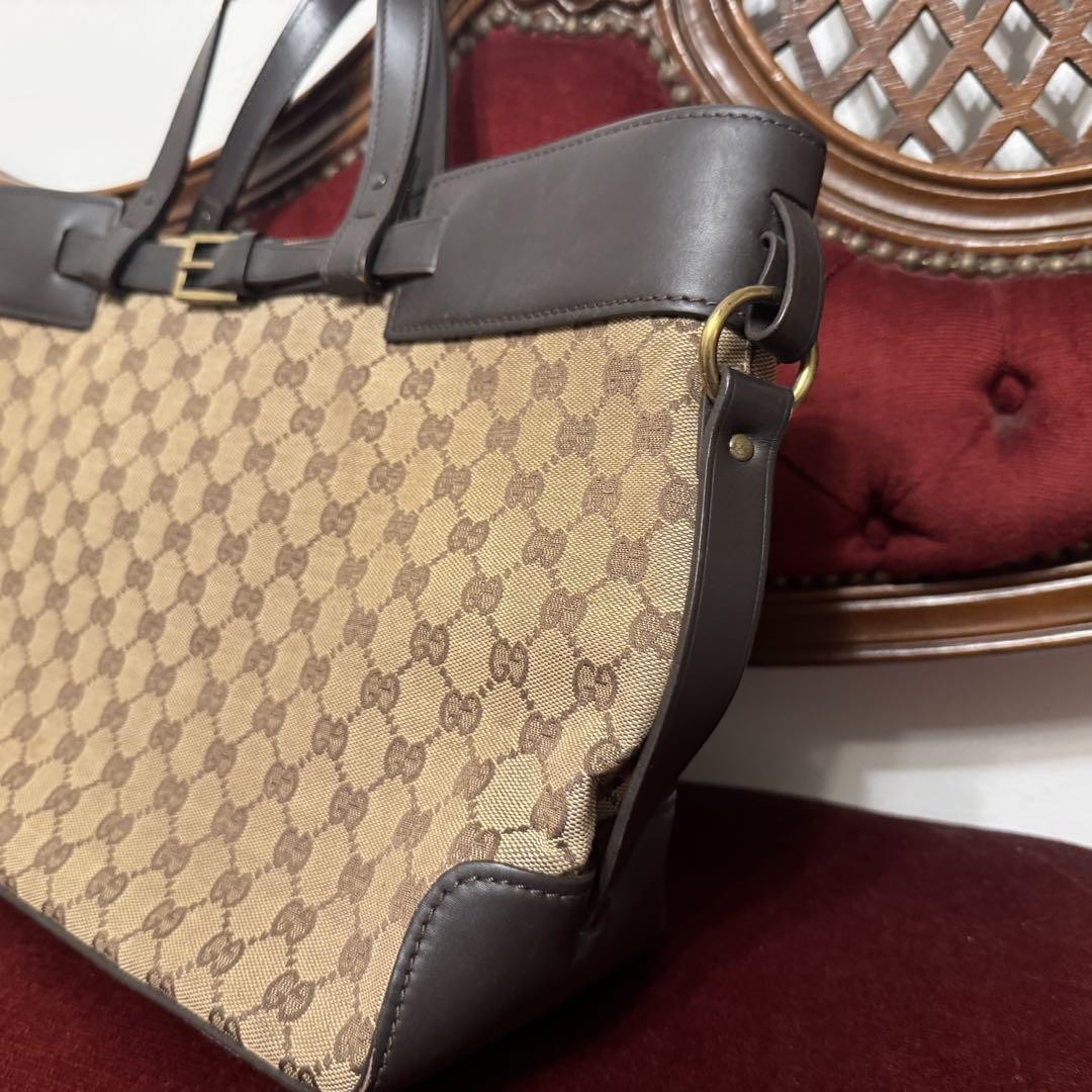 Vintage Gucci GG Canvas Tote Bag with Leather Belt Strap Japan Import