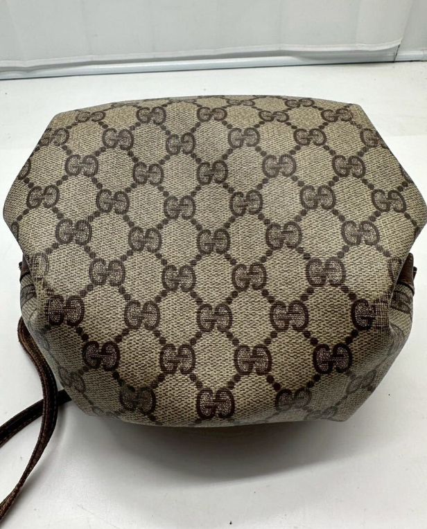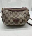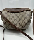 Gucci GG Monogram Supreme Crossbody Pouch Bag RRP $550 AUD on Therealreal Crossbody Bag with GG Supreme canvas & leather Interlocking G Logo on front Leather Trim detailing Single Shoulder Strap Fabric Lining & Single Interior Pocket Serial number on inner tag Approx size: W20cm, H14cm, D10cm, Shoulder Strap Length: 118cm Light discoloration on inside lining, signs of wear on the hardware, the leather parts have signs of wear and have been lightly touched up.