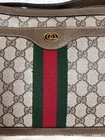 Gucci Old Sherry Line Shoulder Bag GG Red & Green Accents, Used Key Features Gucci GG柄 Shoulder Bag - Brand: Gucci - Product Type: Shoulder Bag / Handbag - Model: GG柄 シェリーライン - Exterior Material: C:Leather - Exterior Color: C:Exterior Color Red and Green accents - Size: Width 12.2 in, Height 8.3 in, Depth 2.4 in - Handle/Strap: Adjustable strap, approximately 39.4 in (two length options) - Closure: Main zipper - Features: Open pocket inside, divided into 3 sections, interior zipper pocket - Condition: Used, shows some scratches and shoulder strap deterioration, interior has some wear but remains functional - Accessories: Storage bag (with some stains) - Country/Region of Manufacture: Italy - Vintage: Yes - Pattern: GG pattern with Cherry Line accents - Occasion: Casual, everyday use - Hardware Material: C:Metal - Handle Style: Adjustable strap - Shape Specifications Brand Gucci Country Japan Product Description Item Title Gucci Old Sherry Line Shoulder Bag Gg Payment Supports managed payments Please pay within 5 days after auction is finished. About Us We are located in Japan. It's our pleasure to make you happy by proposing our recommend item. If you have any questions or request about items, please feel free to ask us. International Buyers - Please Note: -Import duties, taxes, and charges are not included in the item price or shipping charges. These charges are the buyer's responsibility. -Please check with your country's customs office to determine what these additional costs will be prior to bidding/buying. -These charges are normally collected by the delivering freight (shipping) company or when you pick the item up - do not confuse them for additional shipping charges. -We do not mark merchandise values below value or mark items as - gifts - The US and International government regulations prohibit such behavior. Thank you for your understanding.