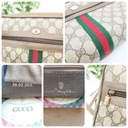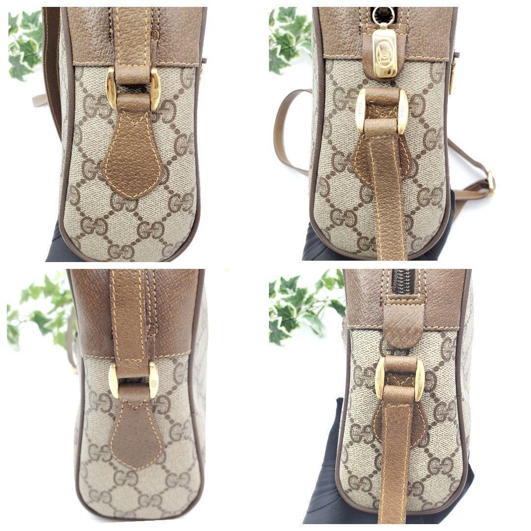GUCCI vintage bag made of leather and PVC GG Supreme material with gold hardware. The colors are beige, brown, red, and green. The size is approximately W 10.24 inches x H 7.28 inches x D 3.35 inches. The shoulder strap is approximately 42.52 to 46.46 inches and adjustable. It has one main space, one outer pocket, and one inner zipper pocket. The serial number is 56.02.005 and has a paper tag. There is some dry dirt inside (as shown in photo 14), but there is no powdering, which is a common issue with vintage Gucci bags. There is a slight glue mark on the back of the zipper inside the outer pocket (as shown in photo 15). The hardware is clean, and it is a beautiful item with a paper tag, almost like new. It is in very good condition for a vintage item and can still be used for a long time. I promise fast shipping via FedEx or DHL as soon as possible! Import duties, taxes and charges are not included in the item price or shipping charges. These charges are the buyer’s responsibility. These charges are normally collected by the delivering freight (shipping) company or when you pick the item up - do not confuse them for additional shipping charges.