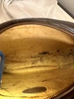 It is a rare vintage bag thats shows some usageand its age. Inside shows some ink stain but leather inside is still intact. Inspite of these flaws Bag is still looks new. Pictures shows the condition of the bag. Message me if you need more information. Thank you for looking.
