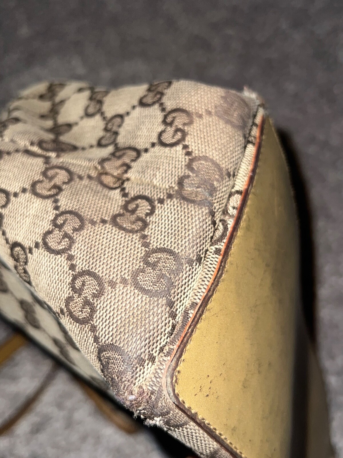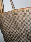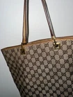 The vintage Gucci tote bag is a stylish and timeless accessory designed for women. Made of a combination of leather and canvas in a classic beige color, this tote features an inside pocket for added functionality. The Gucci brand ensures high quality and luxurious design, making this bag a must-have for any fashion-forward woman looking to add a touch of sophistication to her wardrobe.