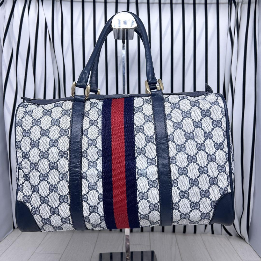 Gucci GG pattern old Gucci PVC Boston bag with a large sherry line on the body. Leather is used for the handle, opening, edges, and bottom corners. The hardware is gold. The main opening has a zipper. A long wallet, key case, plastic bottle, smartphone, and pouch can be stored with plenty of room. No inner pocket. There are stains as shown in the 3rd image. The bag is creased as shown in the 2nd and 3rd images. There is wear on the edge and the core of the handle is misaligned, as shown in the upper right of the 8th image. Handle drop is about 4.33 inches. The height is about 9.45 inches. The width is about 12.20 inches. The depth is about 5.91 inches. I promise fast shipping via FedEx or DHL as soon as possible! Import duties, taxes and charges are not included in the item price or shipping charges. These charges are the buyer’s responsibility. These charges are normally collected by the delivering freight (shipping) company or when you pick the item up - do not confuse them for additional shipping charges.