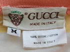Brand: Gucci Size: M Color: white with yellow and orange stripes Fabric Content: 100%cotton Features: Sunny sporty long sleeve super soft long tee. Made in Italy this cotton shirt is knit with a very fine cotton and has a quality looking sheen. Slightly dropped shoulders.. Great for warm weather as sun protection but can also add warmth with another layer or scarf. Small side slits at hem. Measurements: Neck: 20.5” Bust/Chest:40” Waist: 37” Hip: 40” Shoulder to Shoulder: 18” Sleeve Length: 21” Center Back Length: 25” Condition: Great Care: Machine or hand wash gentle. Do not dry because of potential shrinkage and to keep colors clear Vintage sizing varies, so be sure to check your measurements and ask any questions before your purchase. The vintage condition is noted in the product description and can be observed using the zoom feature on the photos. We are happy to send further measurements or photos upon request. Thank you for shopping with us!